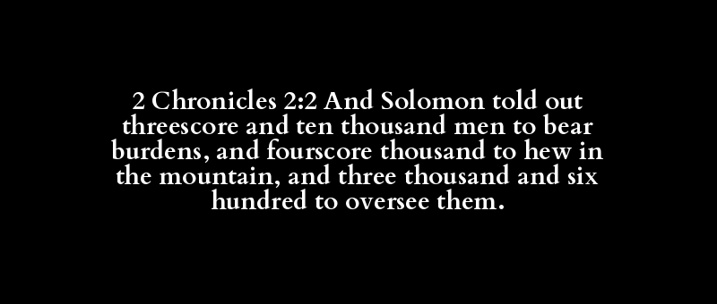 2 Chronicles 2:2 And Solomon told out threescore and ten thousand men to bear burdens, and fourscore thousand to hew in the mountain, and three thousand and six hundred to oversee them.