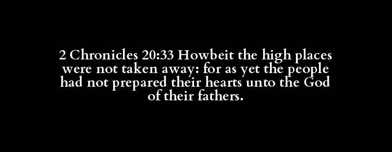 2 Chronicles 20:33 Howbeit the high places were not taken away: for as yet the people had not prepared their hearts unto the God of their fathers.
