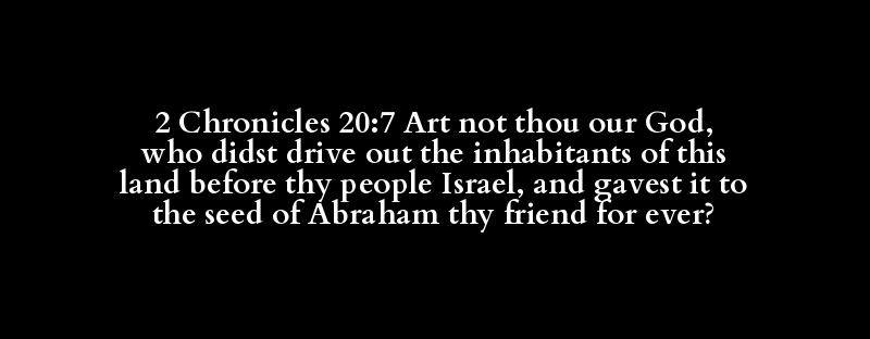 2 Chronicles 20:7 Art not thou our God, who didst drive out the inhabitants of this land before thy people Israel, and gavest it to the seed of Abraham thy friend for ever?