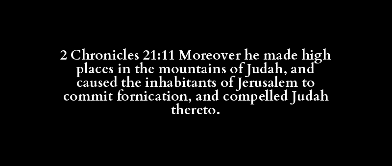 2 Chronicles 21:11 Moreover he made high places in the mountains of Judah, and caused the inhabitants of Jerusalem to commit fornication, and compelled Judah thereto.