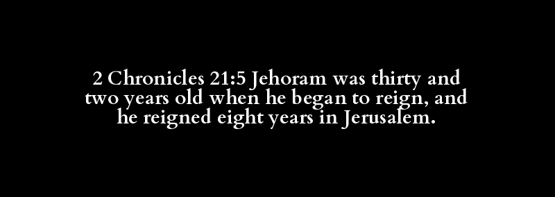 2 Chronicles 21:5 Jehoram was thirty and two years old when he began to reign, and he reigned eight years in Jerusalem.