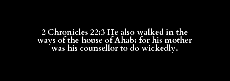 2 Chronicles 22:3 He also walked in the ways of the house of Ahab: for his mother was his counsellor to do wickedly.