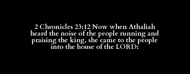 2 Chronicles 23:12 Now when Athaliah heard the noise of the people running and praising the king, she came to the people into the house of the LORD: