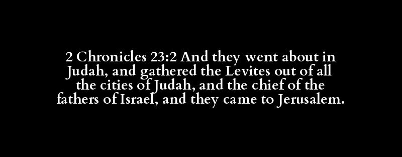 2 Chronicles 23:2 And they went about in Judah, and gathered the Levites out of all the cities of Judah, and the chief of the fathers of Israel, and they came to Jerusalem.