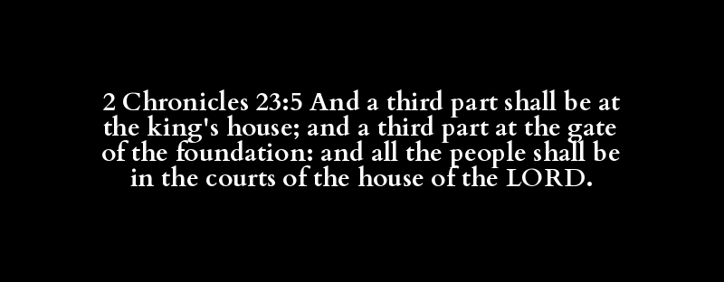 2 Chronicles 23:5 And a third part shall be at the king's house; and a third part at the gate of the foundation: and all the people shall be in the courts of the house of the LORD.