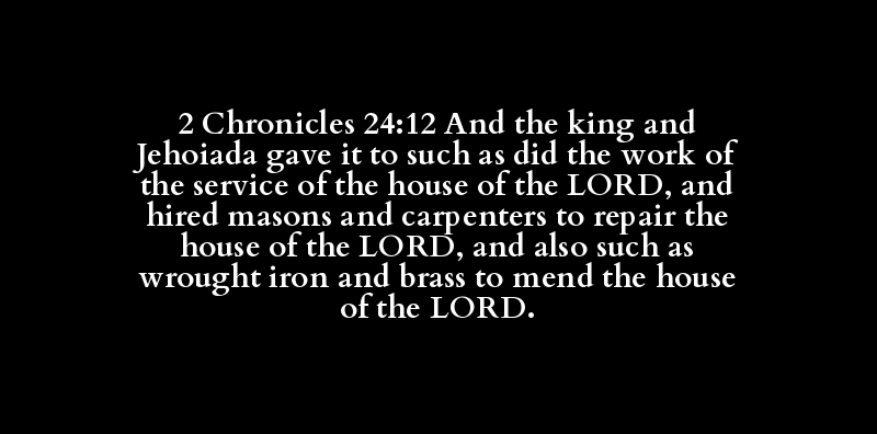 2 Chronicles 24:12 And the king and Jehoiada gave it to such as did the work of the service of the house of the LORD, and hired masons and carpenters to repair the house of the LORD, and also such as wrought iron and brass to mend the house of the LORD.