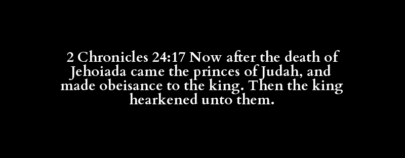 2 Chronicles 24:17 Now after the death of Jehoiada came the princes of Judah, and made obeisance to the king. Then the king hearkened unto them.