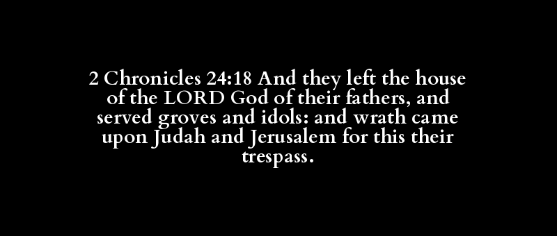 2 Chronicles 24:18 And they left the house of the LORD God of their fathers, and served groves and idols: and wrath came upon Judah and Jerusalem for this their trespass.