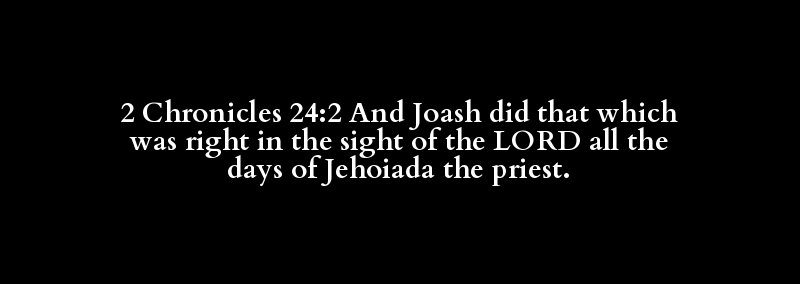 2 Chronicles 24:2 And Joash did that which was right in the sight of the LORD all the days of Jehoiada the priest.