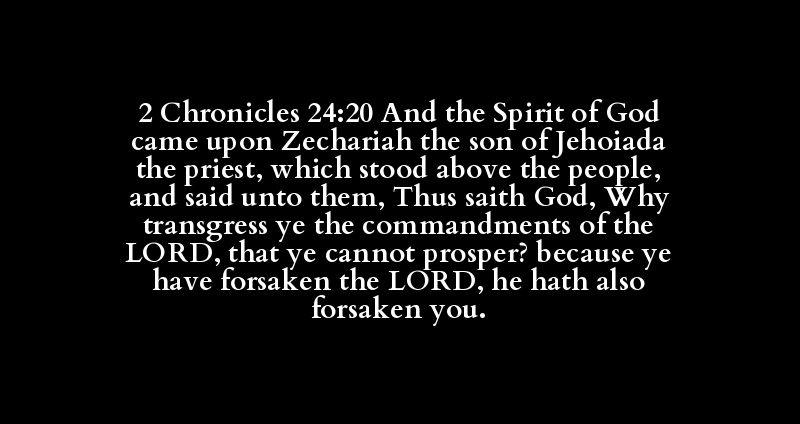 2 Chronicles 24:20 And the Spirit of God came upon Zechariah the son of Jehoiada the priest, which stood above the people, and said unto them, Thus saith God, Why transgress ye the commandments of the LORD, that ye cannot prosper? because ye have forsaken the LORD, he hath also forsaken you.