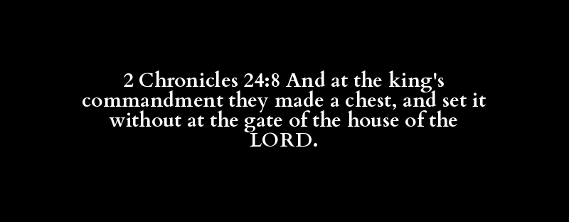 2 Chronicles 24:8 And at the king's commandment they made a chest, and set it without at the gate of the house of the LORD.