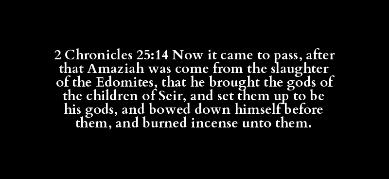 2 Chronicles 25:14 Now it came to pass, after that Amaziah was come from the slaughter of the Edomites, that he brought the gods of the children of Seir, and set them up to be his gods, and bowed down himself before them, and burned incense unto them.