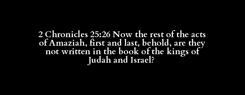 2 Chronicles 25:26 Now the rest of the acts of Amaziah, first and last, behold, are they not written in the book of the kings of Judah and Israel?