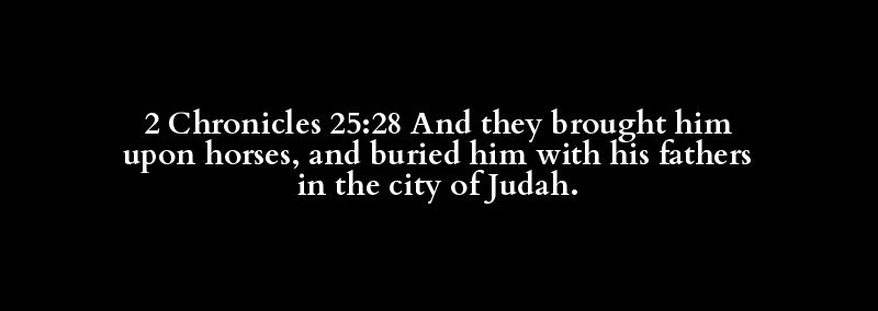 2 Chronicles 25:28 And they brought him upon horses, and buried him with his fathers in the city of Judah.