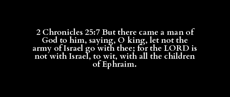 2 Chronicles 25:7 But there came a man of God to him, saying, O king, let not the army of Israel go with thee; for the LORD is not with Israel, to wit, with all the children of Ephraim.