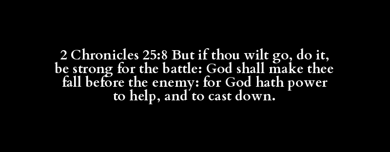2 Chronicles 25:8 But if thou wilt go, do it, be strong for the battle: God shall make thee fall before the enemy: for God hath power to help, and to cast down.