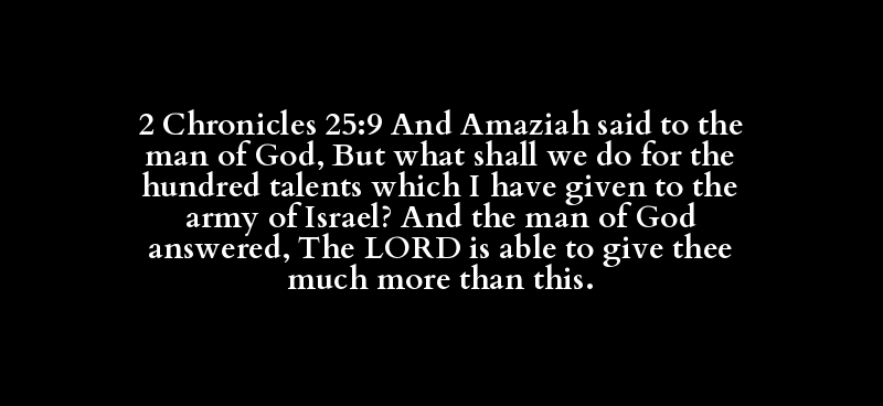 2 Chronicles 25:9 And Amaziah said to the man of God, But what shall we do for the hundred talents which I have given to the army of Israel? And the man of God answered, The LORD is able to give thee much more than this.