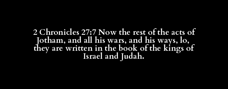 2 Chronicles 27:7 Now the rest of the acts of Jotham, and all his wars, and his ways, lo, they are written in the book of the kings of Israel and Judah.
