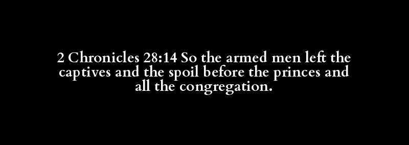 2 Chronicles 28:14 So the armed men left the captives and the spoil before the princes and all the congregation.