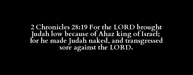 | יְהֹוָה | כָּנַע | יְהוּדָה | כָּנַע | אָחָז | מֶלֶךְ | יִשְׂרָאֵל | פָּרַע | יְהוּדָה | פָּרַע | מָעַל | מַעַל | יְהֹוָה |