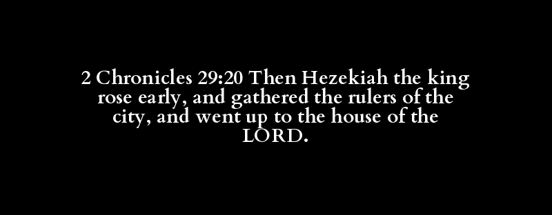 2 Chronicles 29:20 Then Hezekiah the king rose early, and gathered the rulers of the city, and went up to the house of the LORD.
