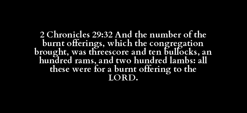 2 Chronicles 29:32 And the number of the burnt offerings, which the congregation brought, was threescore and ten bullocks, an hundred rams, and two hundred lambs: all these were for a burnt offering to the LORD.