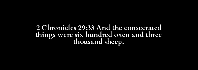 2 Chronicles 29:33 And the consecrated things were six hundred oxen and three thousand sheep.