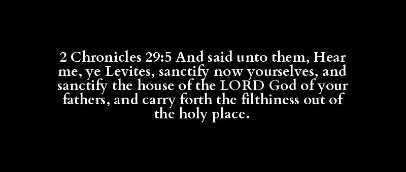 2 Chronicles 29:5 And said unto them, Hear me, ye Levites, sanctify now yourselves, and sanctify the house of the LORD God of your fathers, and carry forth the filthiness out of the holy place.