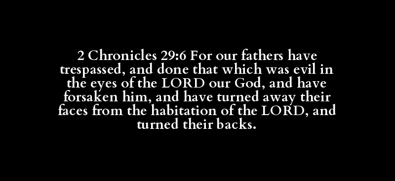 2 Chronicles 29:6 For our fathers have trespassed, and done that which was evil in the eyes of the LORD our God, and have forsaken him, and have turned away their faces from the habitation of the LORD, and turned their backs.