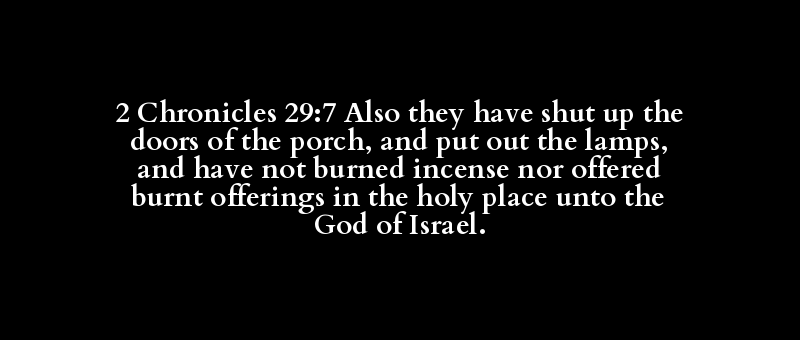 2 Chronicles 29:7 Also they have shut up the doors of the porch, and put out the lamps, and have not burned incense nor offered burnt offerings in the holy place unto the God of Israel.