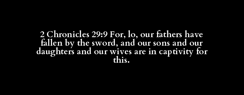 2 Chronicles 29:9 For, lo, our fathers have fallen by the sword, and our sons and our daughters and our wives are in captivity for this.
