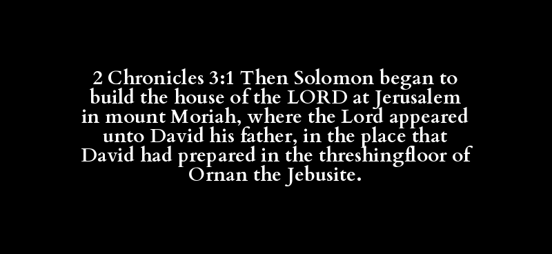 2 Chronicles 3:1 Then Solomon began to build the house of the LORD at Jerusalem in mount Moriah, where the Lord appeared unto David his father, in the place that David had prepared in the threshingfloor of Ornan the Jebusite.
