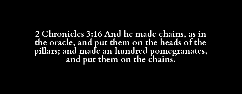 2 Chronicles 3:16 And he made chains, as in the oracle, and put them on the heads of the pillars; and made an hundred pomegranates, and put them on the chains.