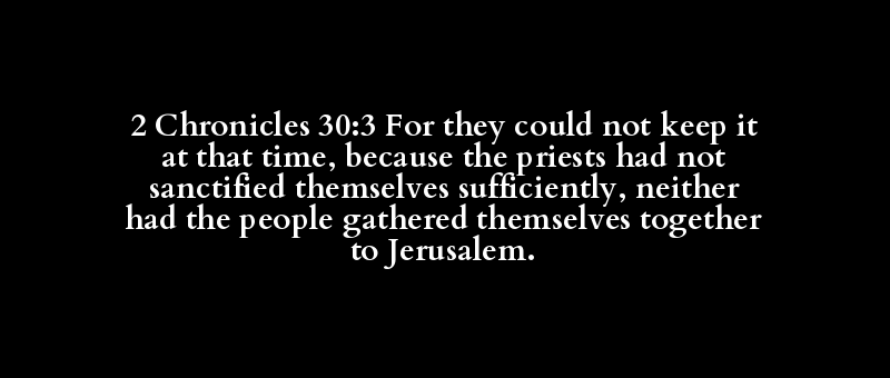 2 Chronicles 30:3 For they could not keep it at that time, because the priests had not sanctified themselves sufficiently, neither had the people gathered themselves together to Jerusalem.