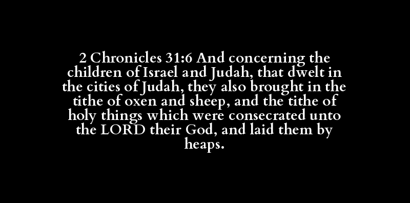 2 Chronicles 31:6 And concerning the children of Israel and Judah, that dwelt in the cities of Judah, they also brought in the tithe of oxen and sheep, and the tithe of holy things which were consecrated unto the LORD their God, and laid them by heaps.