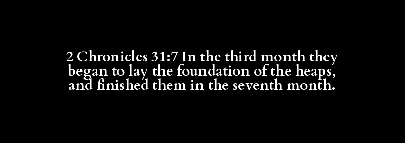 2 Chronicles 31:7 In the third month they began to lay the foundation of the heaps, and finished them in the seventh month.