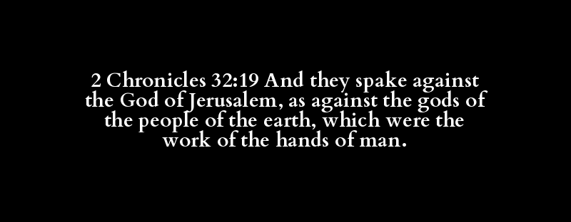 2 Chronicles 32:19 And they spake against the God of Jerusalem, as against the gods of the people of the earth, which were the work of the hands of man.