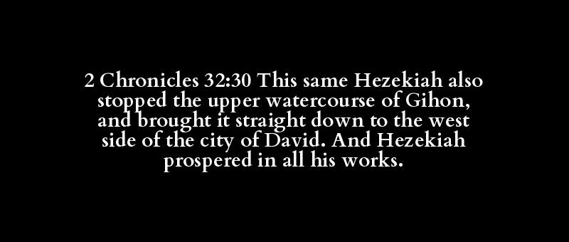 2 Chronicles 32:30 This same Hezekiah also stopped the upper watercourse of Gihon, and brought it straight down to the west side of the city of David. And Hezekiah prospered in all his works.