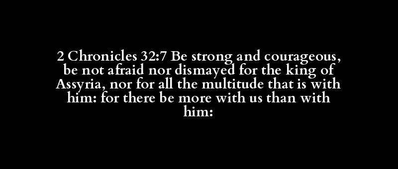 2 Chronicles 32:7 Be strong and courageous, be not afraid nor dismayed for the king of Assyria, nor for all the multitude that is with him: for there be more with us than with him: