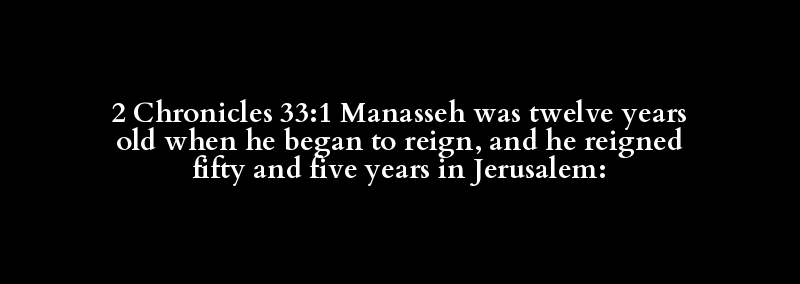 2 Chronicles 33:1 Manasseh was twelve years old when he began to reign, and he reigned fifty and five years in Jerusalem:
