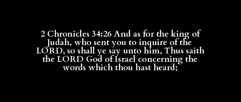 2 Chronicles 34:26 And as for the king of Judah, who sent you to inquire of the LORD, so shall ye say unto him, Thus saith the LORD God of Israel concerning the words which thou hast heard;
