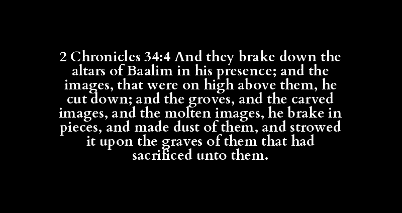 2 Chronicles 34:4 And they brake down the altars of Baalim in his presence; and the images, that were on high above them, he cut down; and the groves, and the carved images, and the molten images, he brake in pieces, and made dust of them, and strowed it upon the graves of them that had sacrificed unto them.