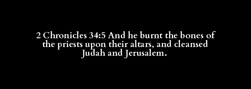 2 Chronicles 34:5 And he burnt the bones of the priests upon their altars, and cleansed Judah and Jerusalem.