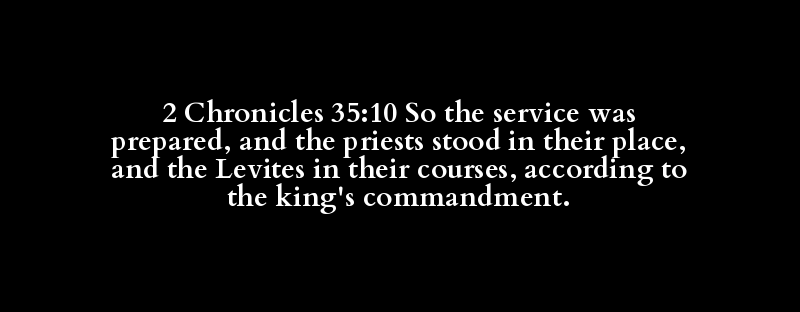 2 Chronicles 35:10 So the service was prepared, and the priests stood in their place, and the Levites in their courses, according to the king's commandment.