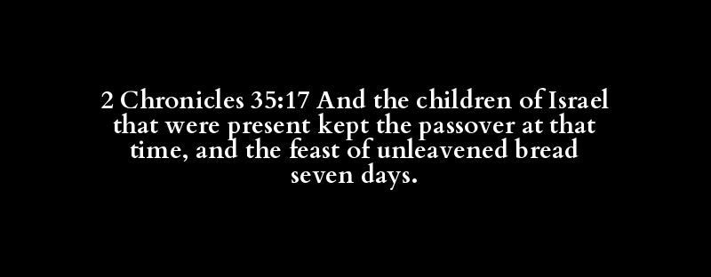 2 Chronicles 35:17 And the children of Israel that were present kept the passover at that time, and the feast of unleavened bread seven days.