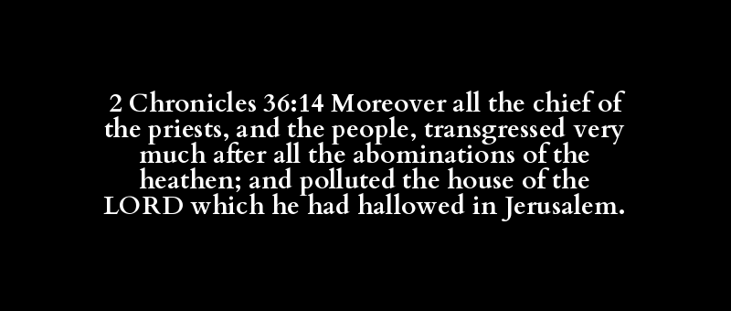 2 Chronicles 36:14 Moreover all the chief of the priests, and the people, transgressed very much after all the abominations of the heathen; and polluted the house of the LORD which he had hallowed in Jerusalem.