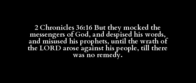 2 Chronicles 36:16 But they mocked the messengers of God, and despised his words, and misused his prophets, until the wrath of the LORD arose against his people, till there was no remedy.