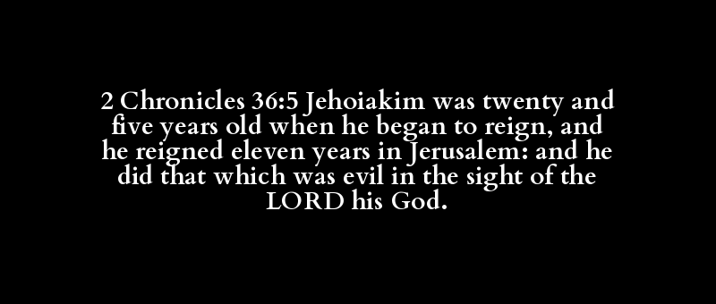 2 Chronicles 36:5 Jehoiakim was twenty and five years old when he began to reign, and he reigned eleven years in Jerusalem: and he did that which was evil in the sight of the LORD his God.
