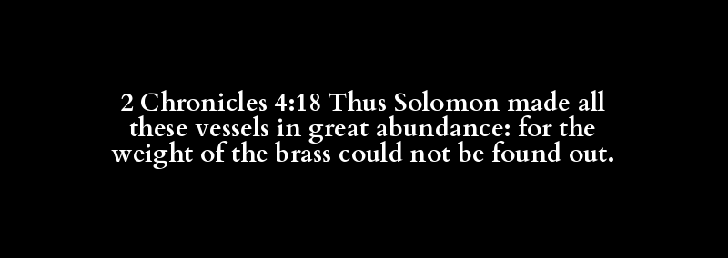 2 Chronicles 4:18 Thus Solomon made all these vessels in great abundance: for the weight of the brass could not be found out.