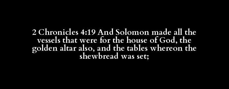 2 Chronicles 4:19 And Solomon made all the vessels that were for the house of God, the golden altar also, and the tables whereon the shewbread was set;